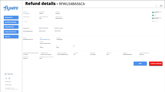 When you cancel a refund, Flywire will not process the refund.