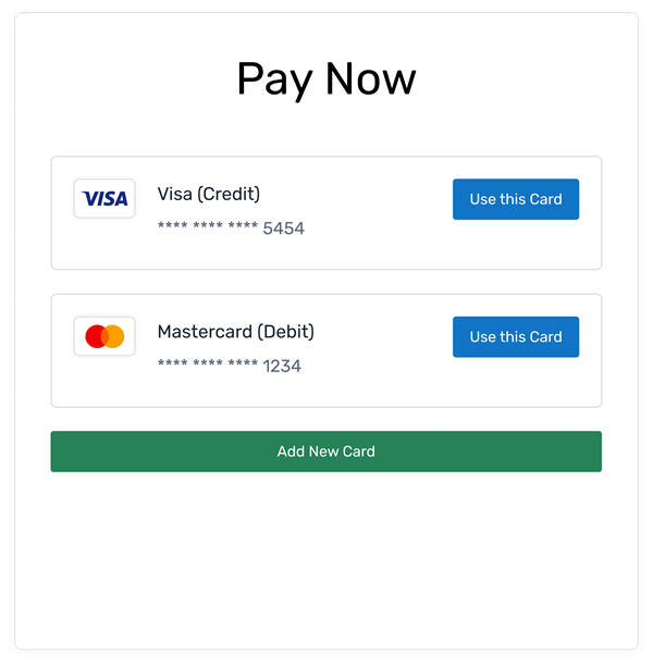 You can make it easy for your payers to use saved cards for new payments, you can combine two endpoints: